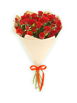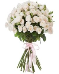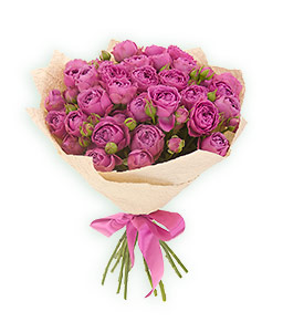 Милый букет для женской половины из кустовой розы в крафт бумаге, перевязан лентой. Кустовую розы любят все девушки, об этом мы знаем точно.