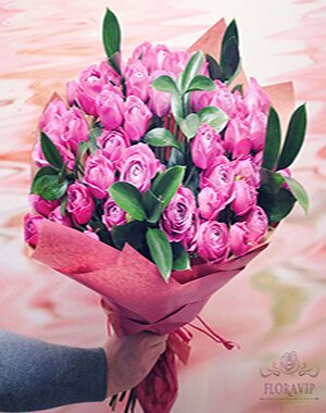 Букет из кустовой розы розового цвета. Ориентировачная стоимость – 1.300.000 (130 руб.) (51 Роза 60 см)