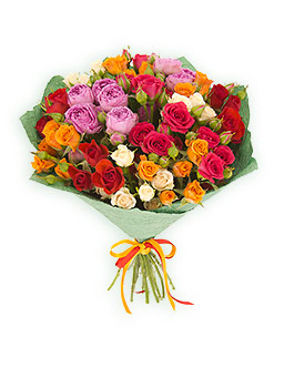 Букет «Цветочный микс» - букет для яркого, энергичного, решительного человека (состоит из 12 роз, с зеленью).
