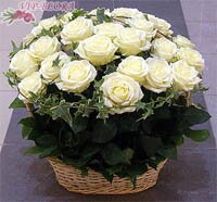 Композиция в корзине из белой, крупной розы – 31 шт. Ориентировачная стоимость – 850.000 (85 руб.)