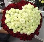«Букет сердце из роз» - букет из 101 розы. Белое сердце внутри, обрамленное ярко красной розой. Стоимость -1.800.000 (180 руб.), 50 см - 2.100.000 (210 руб.), 60 см- 2.600.000 (260 руб.), 70 см - 3.100.000 (310 руб.).