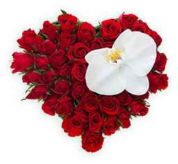 БС№4 – композиция сердце из 51 красной розы и орхидеи. Размер композиции сердце из роз 45/45 Стоимость на вынос – 1.300.000 (130 руб.)