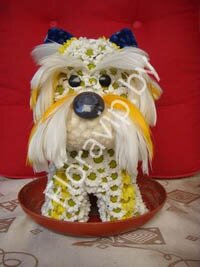 Композиция «Йоркшир» - белая собачка из хризантемы. Высота 50см. Вес около 5кг.