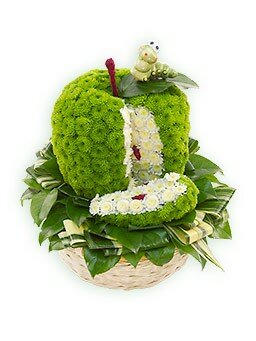 «Яблочко» - игрушка из цветов, зеленое яблочко. Оригинальный подарок. Хорошая стойкость. Игрушка из хризантемы.