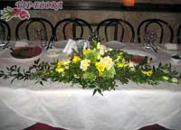 Настольная композиция идеально подходит для оформления любого торжества, бизнес встречи. Состоит из хризантем, розы и зелени. Ориентировачная стоимость – 650.000.